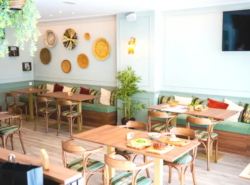 Su carta ofrece especialidades tradicionales de Oriente Medio, incluyendo platos caseros, recetas saludables y una cuidada selección de dulces típicos como la baklawa. Además, dispone de bebidas variadas y servicios pensados para la comodidad del cliente. Nara combina sabor, tradición y confort en una propuesta gastronómica auténtica.
